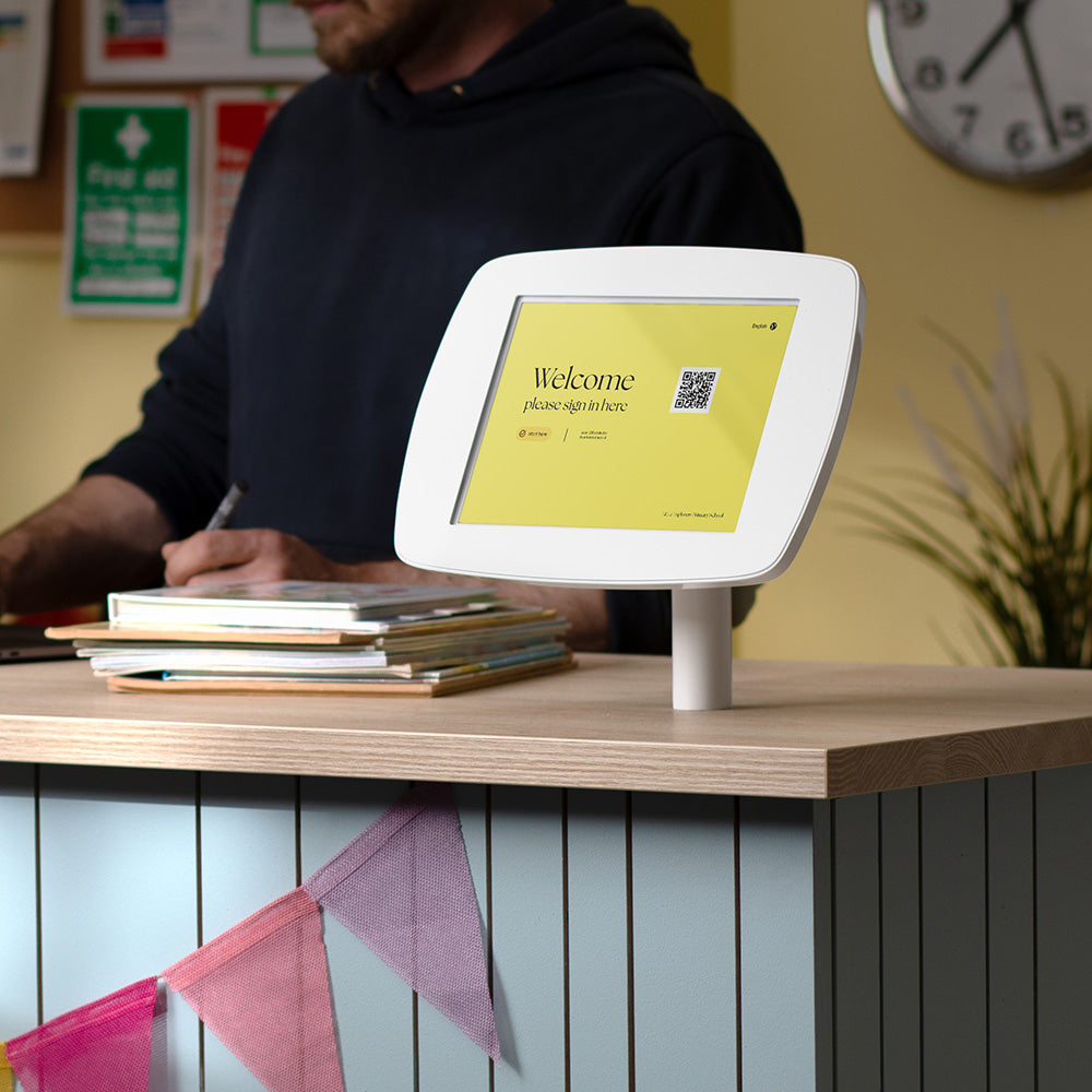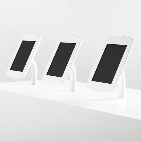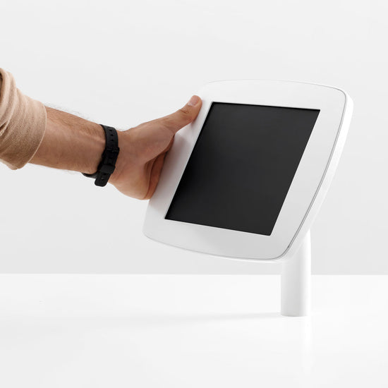 The Bouncepad Original Static 60 is a secure tablet and iPad mount ergonomically designed for easy interaction when mounted to a high counter, table or desk, perfect for digital signage and visitor registration.