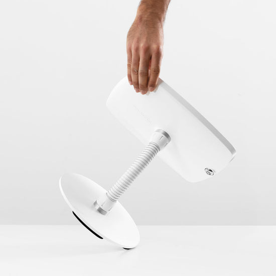 Der schwere, solide Stahlsockel sorgt für Stabilität und Tragbarkeit und ist ideal für Installationen, bei denen keine Löcher in die Theke gebohrt werden können. Und wenn du dir Sorgen um die Sicherheit machst, kaufe unser verstärktes Kabel, um dein Bouncepad festzubinden und dein Tablet aufzuladen (nicht im Lieferumfang enthalten).