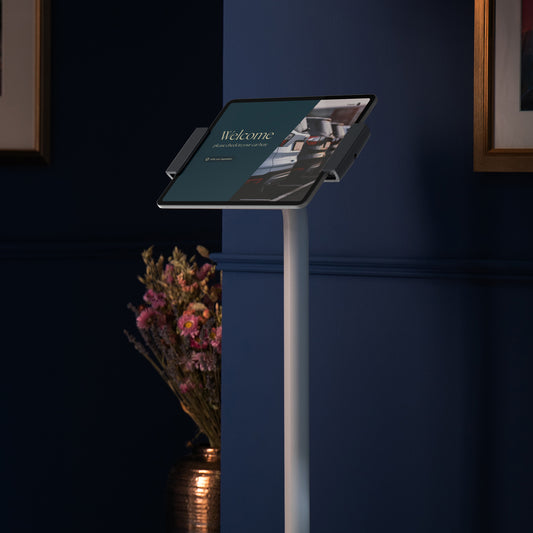 Les supports sur pied Clip sont des fixations pour tablettes sécurisées et autoportantes, conçues pour les environnements en contact avec les clients, offrant une solution stable et flexible pour les applications de libre-service et d’enregistrement.