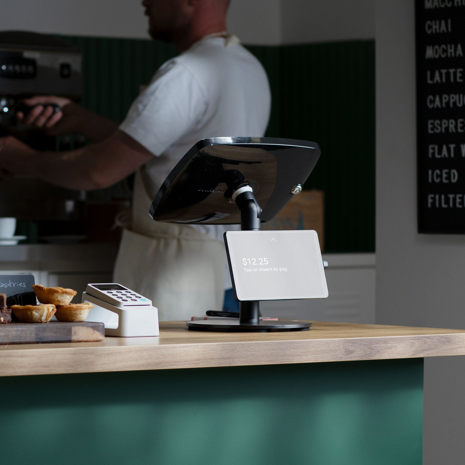 Engineered for a smooth and engaging checkout experience, the main screen features tilt and rotate adjustment, so staff can position it exactly where they need it. The secondary, customer-facing tablet can display pricing and purchase details.
