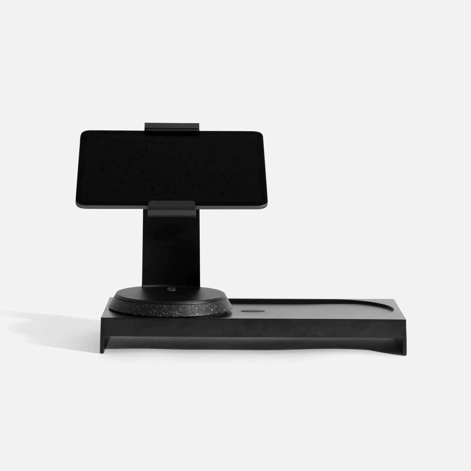 Eddy, our iPad Stand for POS, takes care of your tablet, it's adjustable, secure and manages the cable. Caddy is Eddy's little helper, managing peripheral devices like card readers and receipt printers, keeping their power cables tidy and concealed. It’s the perfect Tablet and iPad stand setup for retail and hospitality.