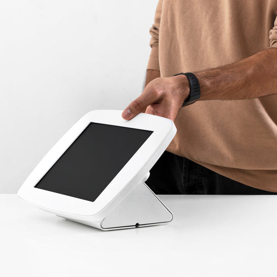 The Bouncepad Original Flip is a secure, freestanding tablet and iPad stand with an integrated flipping mechanism that makes your tablet screen easy to share between users. It’s ideal for retail counters and reception desks.