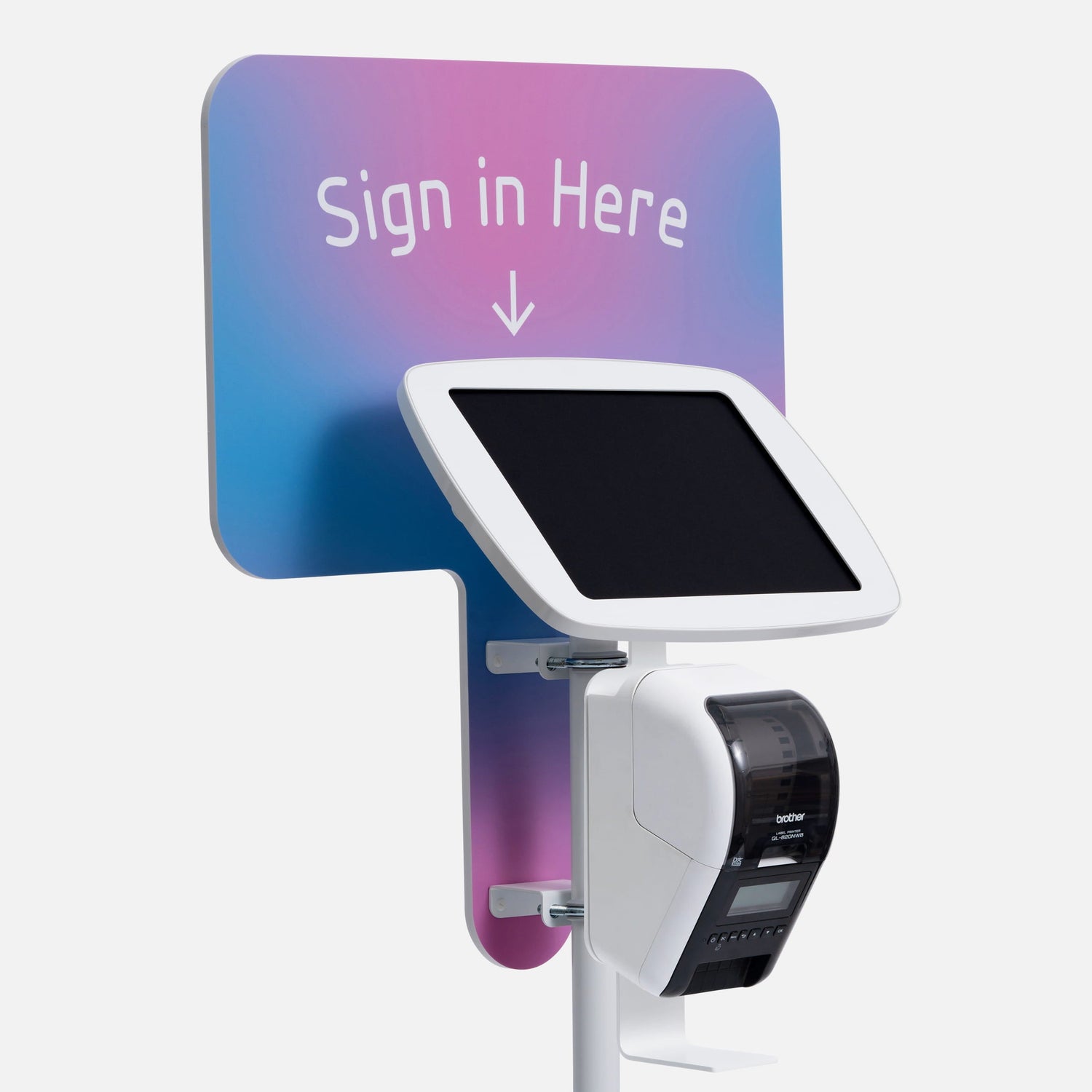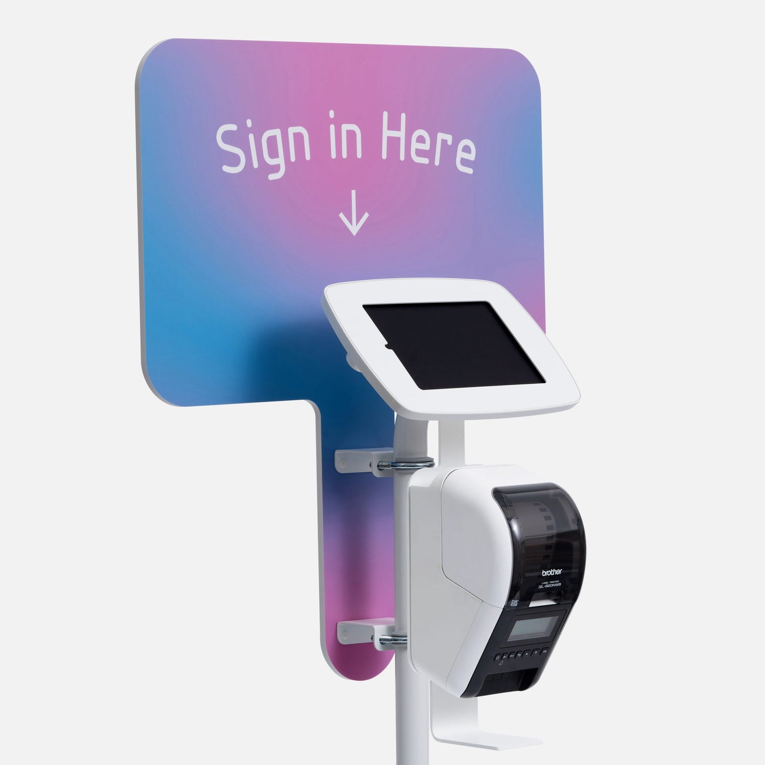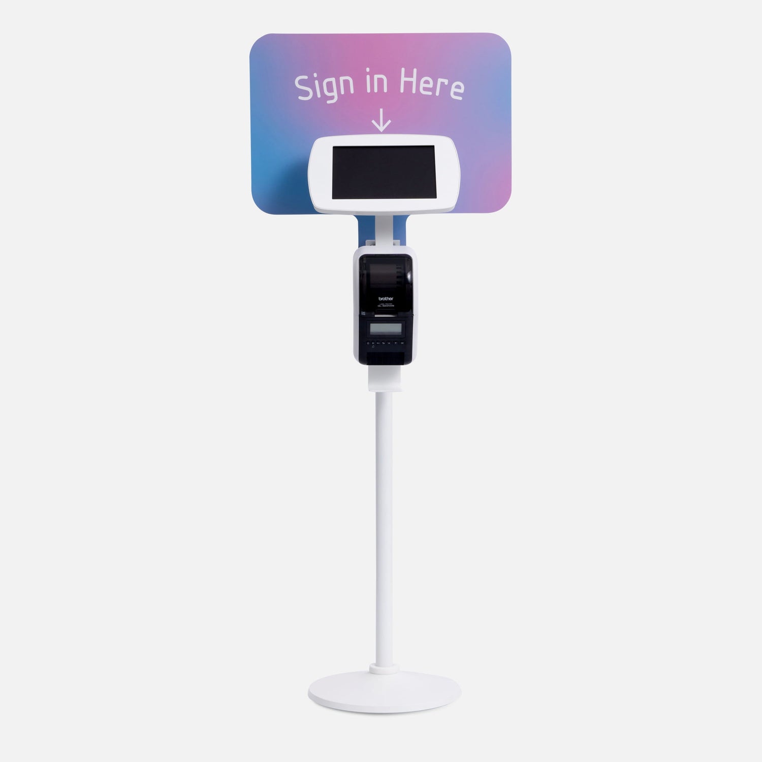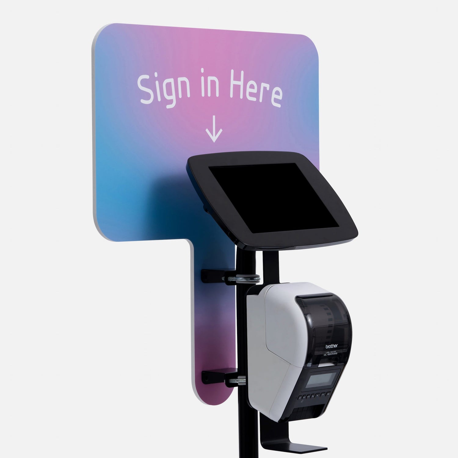 The Bouncepad Original Floorstanding + Brother ® Printer Mount + Placard Board is a secure tablet and iPad floor stand designed for visitor management.