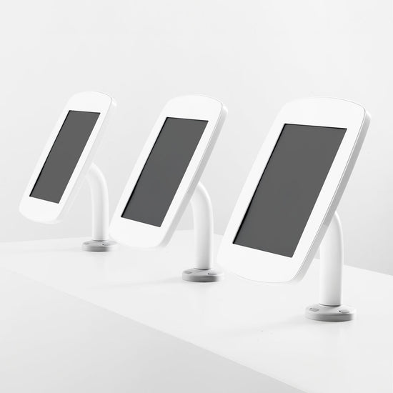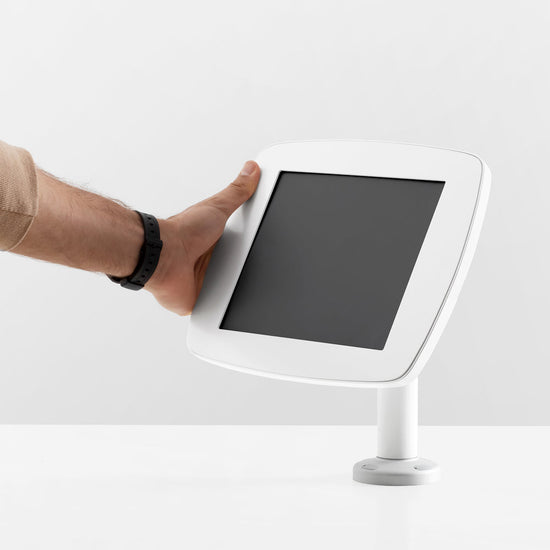 The Bouncepad Original Swivel 60 is a secure, rotating tablet and iPad mount ergonomically designed for easy interaction when mounted to a high counter, table or desk. This tablet kiosk rotates for easy screen sharing.