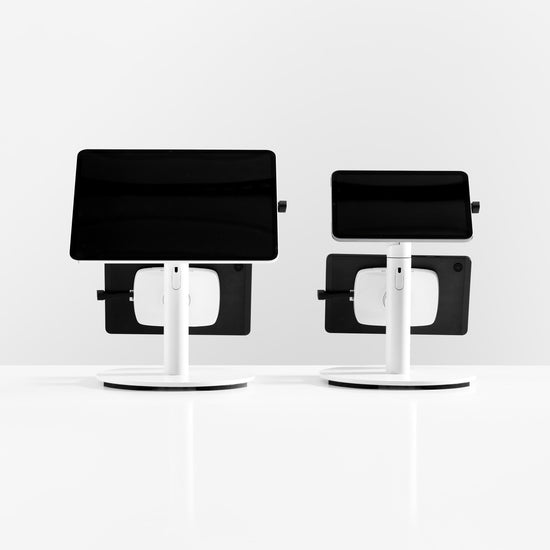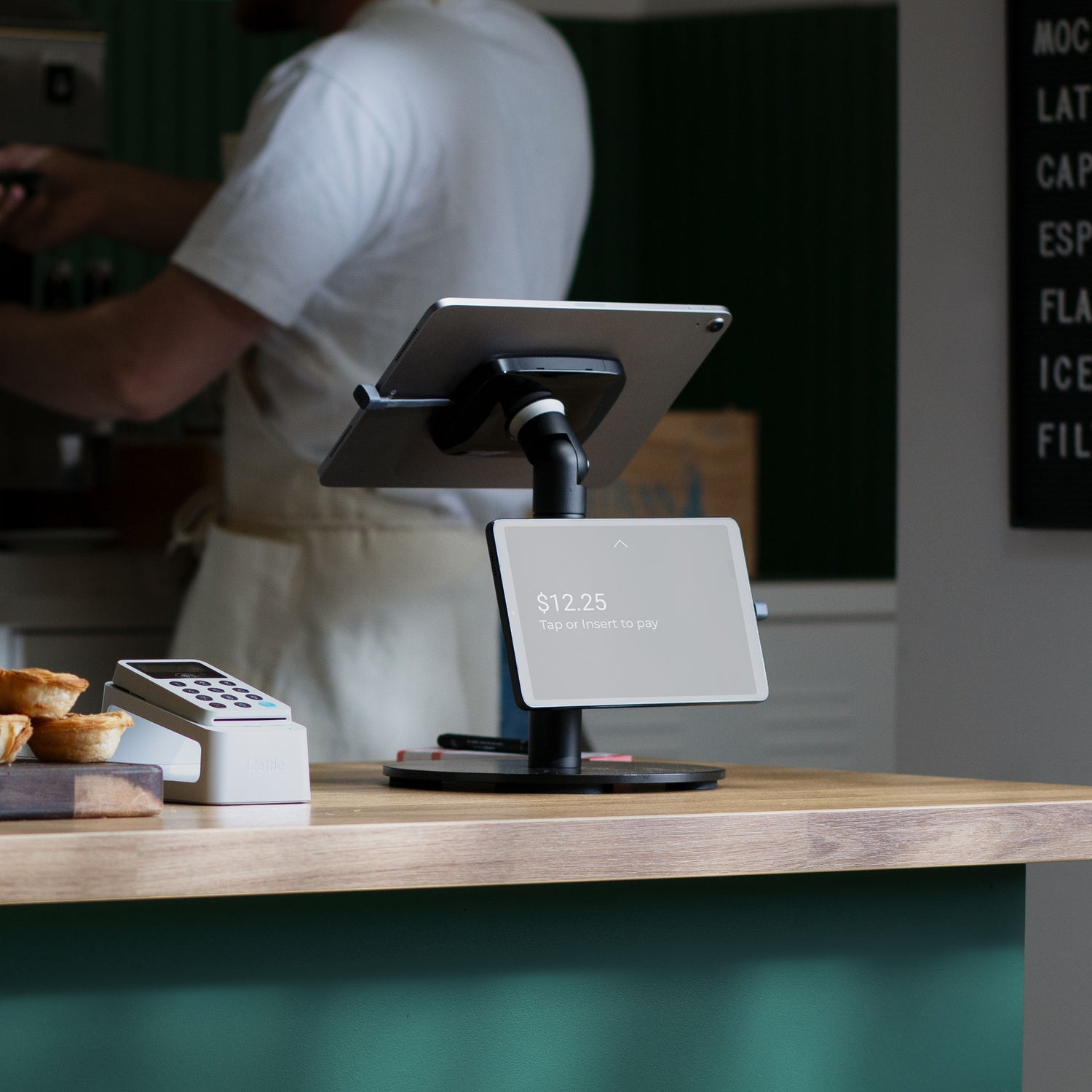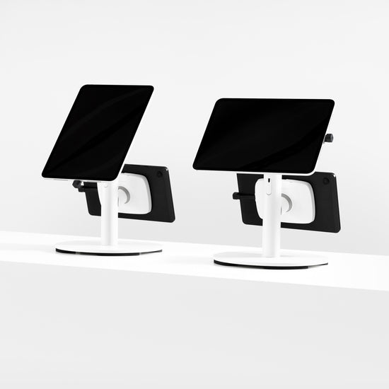 The Core Counter Twin is a dual tablet and iPad stand, purpose-built for POS setups on low level counter-tops.