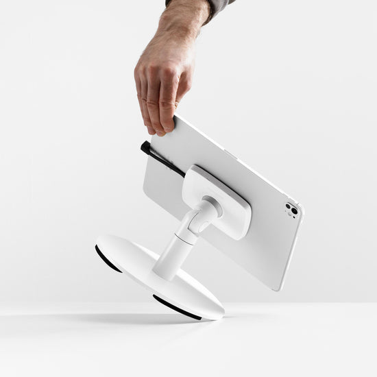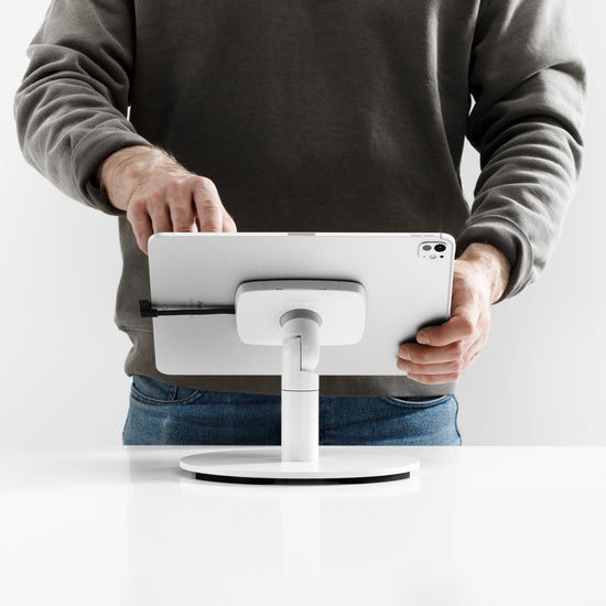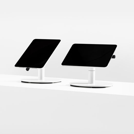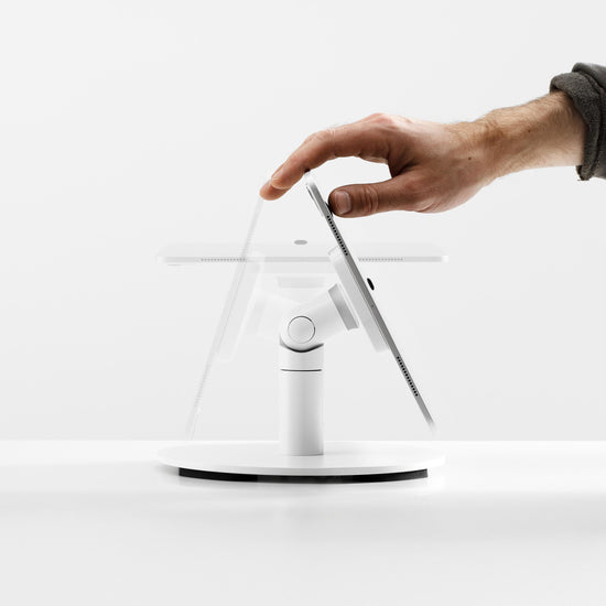 The Core Counter Twist-Mini is a freestanding, stylish tablet and iPad stand for high counter-tops where space is at a premium.