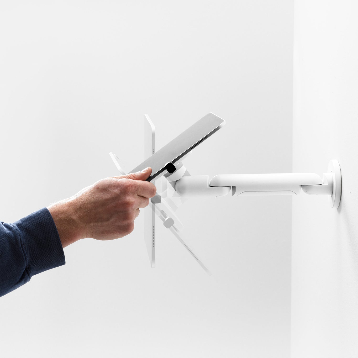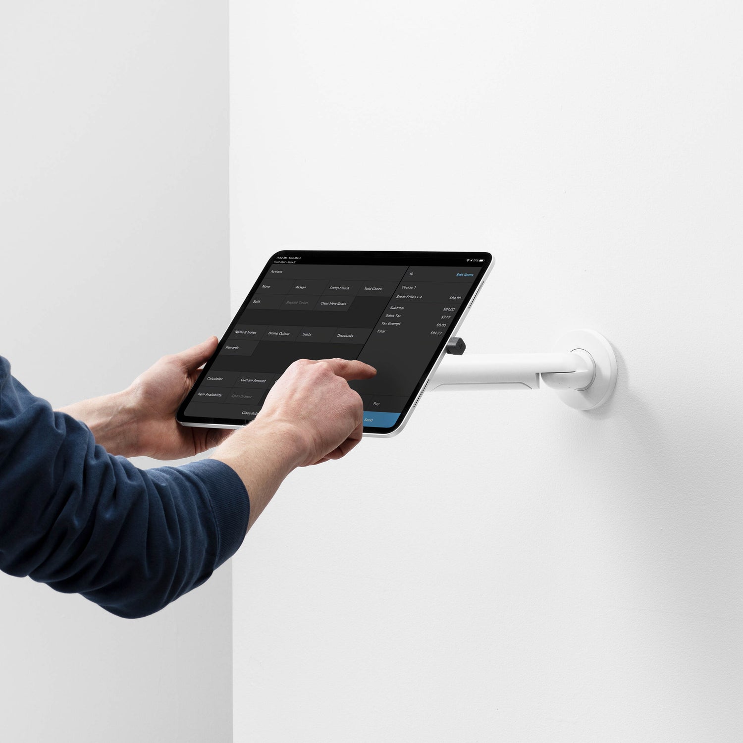 The Bouncepad Core Reach is a secure, articulating tablet and iPad wall mount, designed for space-conscious, customer-facing places.